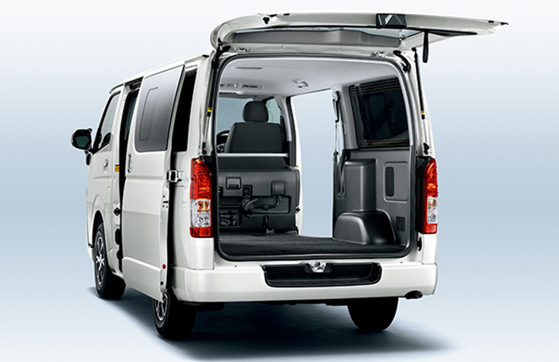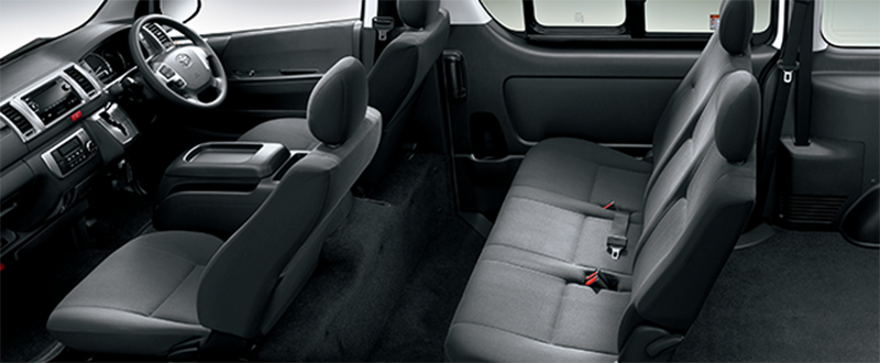 อุปกรณ์ความปลอดภัยที่ติดตั้งใน Toyota Hiace รุ่นที่ออกจำหน่ายในญี่ปุ่นในปัจจุบัน มีเพียงอุปกรณ์พื้นฐาน เช่น