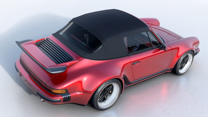 Rob Dickenson ผู้ก่อตั้งและประธานของ Singer ระบุว่า Porsche รุ่นแรกคือ 356/1 มาในตัวถังเปิดประทุน เขาจึงอยากร่วมรำลึกถึงงานสร้างดังกล่าว เป็นเหตุให้ Porsche 911 Turbo Study Cabriolet ถือกำเนิดขึ้นมา โดยตัวถังทำจากคาร์บอนไฟเบอร์ โดดเด่นด้วยสีแดง Cadiz Red ตัดด้วยล้อและผ้าหลังคาสีดำ พร้อมขลิบดำรอบคันตามสไตล์รถยนต์จากยุค 80’s ปิดท้ายด้วยล้อลาย Fuchs