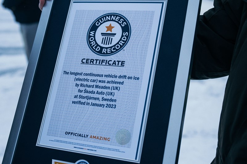 การทำสถิตินี้มีขึ้นเมื่อวันที่ 19 มกราคม 2023 และได้รับการรับรองโดย Guinness World Records เรียบร้อยแล้ว นอกจากนั้น Skoda Enyaq RS iV ยังสร้างสถิติเป็นรถยนต์ไฟฟ้า EV ที่ดริฟท์รถยนต์ต่อเนื่องบนน้ำแข็ง ได้ไกลสุดพร้อมกันด้วย โดยเวลาที่ใช้ทำสถิตินาน 15 นาที 58 วินาที ใช้ความเร็วต่ำสุด 31.64 กิโลเมตร/ชั่วโมง และ ความเร็วสูงสุด 48.69 กิโลเมตร/ชั่วโมง