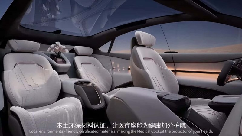 Skyworth Skyhome มาในตัวถัง 4 ประตูทรงเพียงยาวท้ายลาด ประตูเปิดออกแบบตู้กับข้าว ไฟหน้าไฟท้ายเชื่อมต่อกันยาวตลอดแนวกับ LED ทรงเพรียวยาว ชายล่างตัวถังตัดสีทองดูพรีเมี่ยม ทั้งยังล้ำสมัยกับมือเปิดประตูจมตัวถังและใช้กล้องแทนกระจกมองข้าง ภายในมาในครีมตัดด้วยสีทองและโลหะ พวงมาลัยแปลกตาเพราะตัดด้านบนออก และมีซี่โลหะแนวตั้งเต็มด้านล่าง เบาะหลังเป็นแบบแยกสามารถปรับนอนได้ สบายเต็มขั้นด้วยตู้เย็นหลังคอลโซลกลาง, จอฝังพนักพิงศรีษะหน้า และจอโค้งพับอยู่บนเพดานขนาดใหญ่