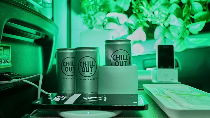 นอกจากนั้น หน้าจอด้านหลังยังแสดงวีดีโอที่ช่วยให้ผู้โดยสารผ่อนคลาย มาพร้อมหูฟังเล่นเพลงขับกล่อม กระจกหน้าต่างอีกฝั่งยังเต็มไปด้วยต้นไม้ ถ้าอยากพักเต็มขั้น ก็มีหมอนและที่ปิดตาเตรียมไว้ให้บริการเช่นกัน นับว่าเป็นการเปิดประสบการณ์ใหม่ที่ดีของชาวโตเกียว
