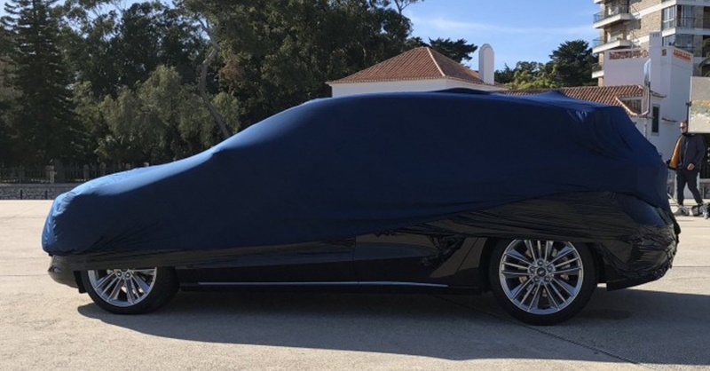 ส่วนอีกภาพนั้น ไม่เห็นอะไรมากนัก เพราะรถยังอยู่ใต้ผ้าคลุม แต่ยังพอจะเผยให้เห็นตัวถัง Hatchback สีดำ ตกแต่งชายประตูด้านล่างด้วยเส้นโครเมี่ยม พร้อมล้อสีเงินลาย 3 ก้านคู่ แต่ดูจะมีขนาดเล็กกว่าล้อของคันสีน้ำเงิน จึงพอจะเดาได้ว่านี่อาจจะเป็นรุ่นย่อย Vignale ที่เน้นความหรูหรา
