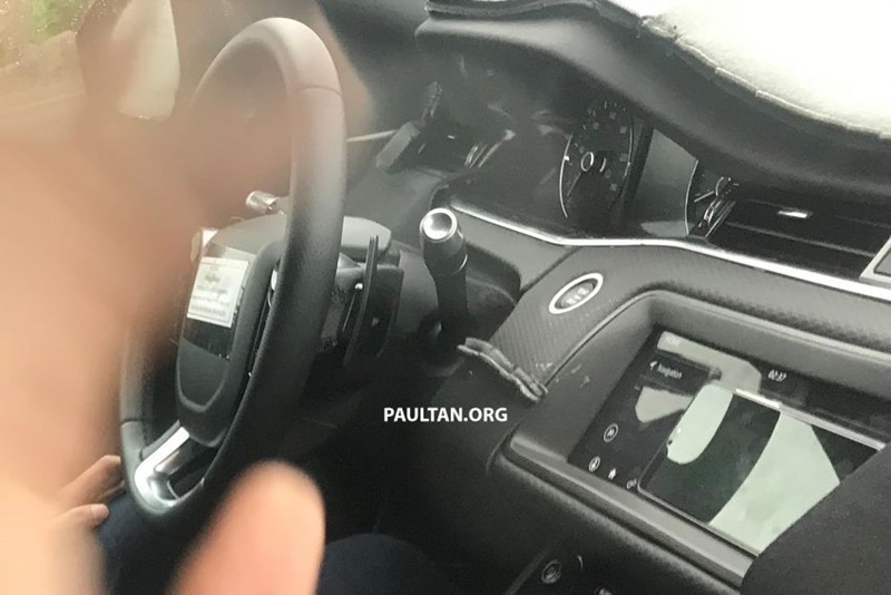 ด้ามเกียร์เป็นแบบไฟฟ้า ซึ่งยังไม่แน่ชัดว่าในคันผลิตจริง ชิ้นส่วนนี้จะปรับเปลี่ยนไปหรือไม่ ส่วนบริเวณคอลโซลกลางนั้น ยังถูกอำพรางเอาไว้อยู่ ข้ามมาดูที่พวงมาลัย ซึ่งเป็นแบบ 4 ก้าน multi-function มีหน้าตาคล้ายกับของ Velar เช่นเคย โดยปุ่มกดด้านซ้ายมีไว้ควบคุมเครื่องเสียง ส่วนฝั่งขวามีไว้ควบคุมระบบล็อคความเร็วโดยอัตโนมัติ