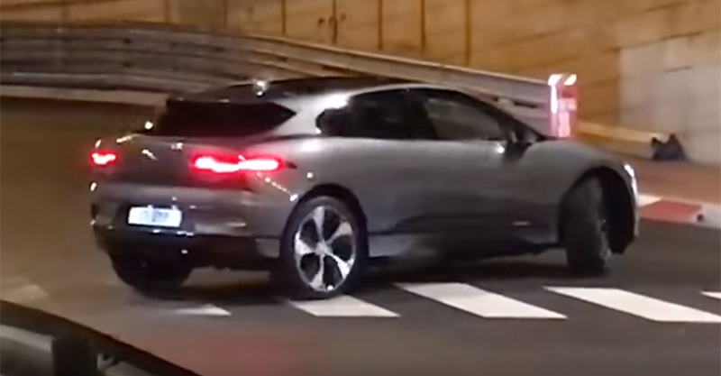 Jaguar I-Pace เวอร์ชั่นผลิตจริง ถูกบันทึกวีดีโอได้ระหว่างการถ่ายทำโฆษณาที่สนาม Grand Prix Circuit ของ Monaco แม้ว่าคุณภาพของวีดีโอที่นำมาเผยแพร่จะไม่ชัดเจนเท่าใดนัก แต่นั่นก็มากพอให้เราเห็นรายละเอียดงานออกแบบภายนอกที่ถอดแบบมาจากคันต้นแบบ ทั้งยังใช้สีตัวถังเป็นสีเทาเฉดเดียวกัน รวมไปถึงล้อลายเดียวกันอีกด้วย