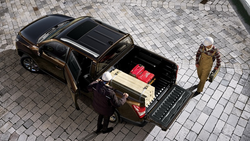 ด้านข้างออกแบบชายตัวถังด้านล่าง ที่กันไม่ให้มีโคลนมาติดประตู ป้องกันไม่ให้ขาผู้ใช้งานสกปรกเวลาขึ้น – ลง ล้อในรุ่นท็อปมีขนาด 20 นิ้ว ส่วนกระบะท้ายมีความกว้างพอที่จะใส่พาเลท ขนาดตามมาตรฐานยุโรป ทั้งยังมีขอเกี่ยวรอบด้าน พร้อมช่องจ่ายไฟขนาด 12V/120W และรองรับน้ำหนักบรรทุกสูงสุด 1 ตัน