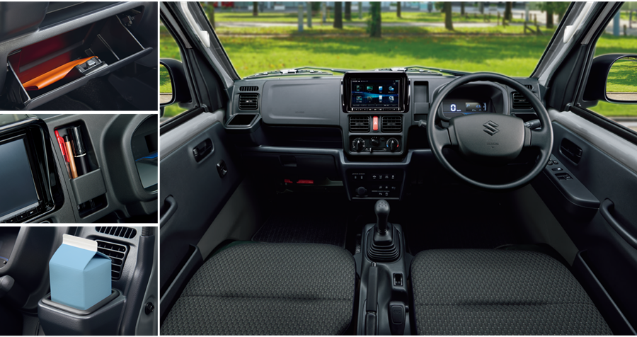 Suzuki Carry Minorchange รุ่นขับเคลื่อนสี่ล้อเกียร์ธรรมดา ยังเพิ่มระบบช่วยปีนออกจากหล่มโคลน ด้านระบบช่วยเหลือผู้ขับขี่ครบครันขึ้น ด้วยการเพิ่มทั้ง ระบบลดความเร็วโดยอัตโนมัติเมื่อเสี่ยงชน Dual Sensor Brake Support II, ระบบป้องกันการเหยียบผิดแป้นขณะออกตัว และ เซนเซอร์กะระยะหน้า – หลัง สำหรับกำหนดการออกจำหน่ายจะเริ่มขึ้นที่ประเทศญี่ปุ่น ในวันที่ 23 มกราคม 2026 สนนราคาจำหน่ายที่นั่น โดยที่ยังไม่รวมภาษีนำเข้าของประเทศไทย แบ่งตามตัวถังได้ดังนี้