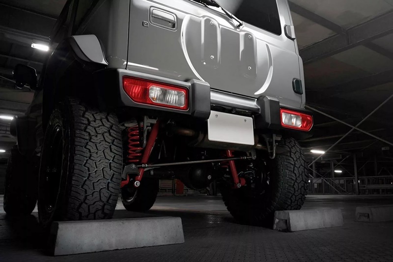 ชุดหน้าของ Suzuki Jimny โดย Fabulous เปลี่ยนไปใช้ไฟหน้าโคมเหลี่ยม พร้อมแถบไฟเลี้ยวแยกแนวนอนด้านล่าง กระจังหน้าเป็นช่องแนวตั้ง 6 ช่องใหญ่ ล้อเลียนเอกลักษณ์ Jeep ที่มี 7 ช่องกระจังหน้า กันชนหน้าหลังเปลี่ยนทรงใหม่และมาในสีวัสดุดำด้าน ล้อเปลี่ยนใหม่พร้อมยาง Yokohama Mud/Terrain ช่วงล่างแต่งใหม่เช่นกัน มีให้เลือกทั้งรุ่นยกสูง 1.5 และ 3.0 นิ้ว โดยอย่างหลังจะมีโป่งล้อสีเดียวกับตัวถังมาเสริมด้วย