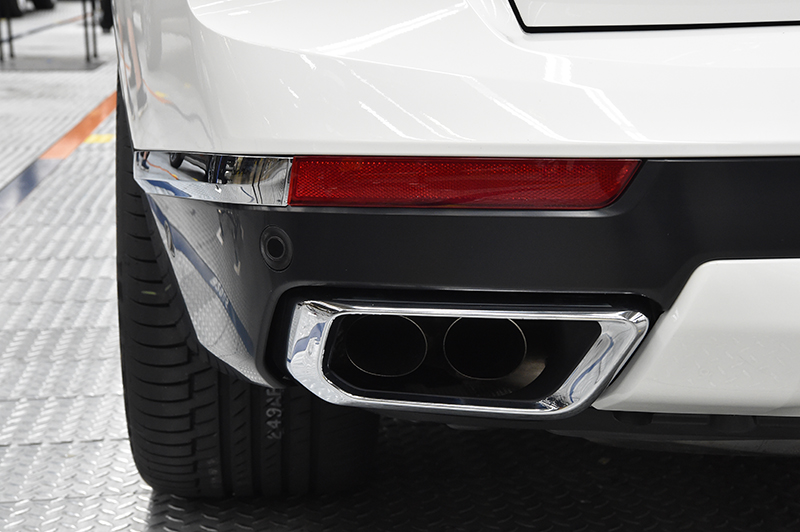 หลังคามีเสาอากาศแบบครีบฉลาม พร้อมราวหลังคา ด้านหลังมาพร้อมกับสปอยเลอร์หลังคา และปลายท่อไอเสียทรงสี่เหลี่ยมคางหมู ที่รวมเป็นชิ้นเดียวกับชายด้านล่างของกันชน ส่วนโคมไฟท้ายคาดว่าจะเป็นแบบ 2 ก้อน ห้องโดยสารมาพร้อมกับหลังคา Panoramic Sunroof 2 ตอน ขนาดใหญ่ ส่วนขุมพลังคาดว่าคันในภาพ อาจใช้เครื่องยนต์ V8 4.4 ลิตร เทอร์โบคู่