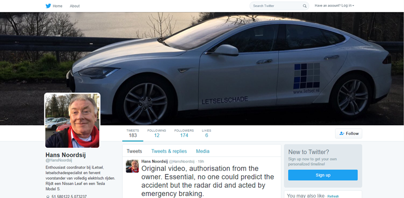 เนื่องจากมีรูป Tesla Model S ใน Twitter ของ Hans Noordsij ผู้ขับขี่ Tesla คันที่บันทึก