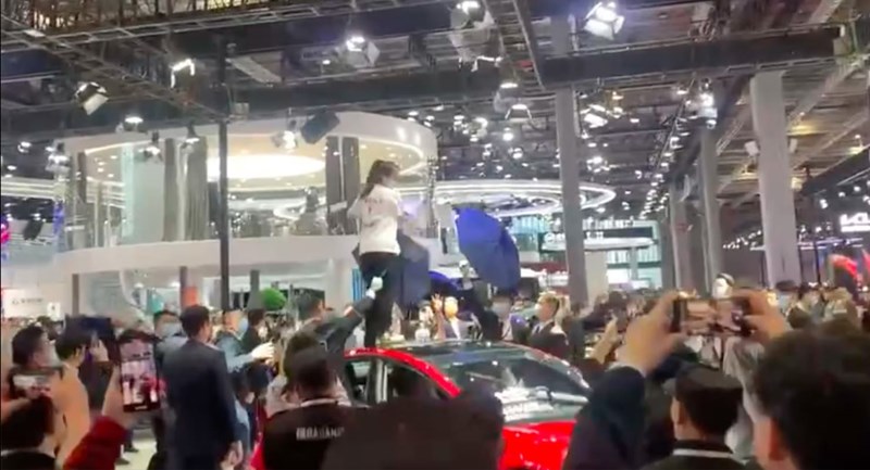 รายงานระบุว่า ผู้ประท้วงทั้งสองคนมี น.ส. Zheng เป็นผู้ที่ขึ้นไปเหยียบบนหลังคารถ Tesla Model 3 จนคนของ Tesla รีบวิ่งเอาร่มไปกางบังเสื้อของเธอตามภาพประกอบ ซึ่งเธอให้เหตุผลว่าครอบครัวของเธอเสียชีวิตจากอุบัติเหตุบนท้องถนน และเธอเชื่อว่าเกิดจากระบบเบรกมีปัญหา ถึง Tesla จะแย้งว่าได้ตรวจสอบข้อมูลภายในรถยนต์แล้วและไม่พบปัญหาใด ส่วนผู้ประท้วงอีกรายคือ น.ส. Li ซึ่งมี Tesla Model 3 ในครอบครองเช่นกัน และเธอเชื่อว่าเบรกมีปัญหา จนทำให้เธอเกิดอุบัติเหตุในเดือนมีนาคม 2021