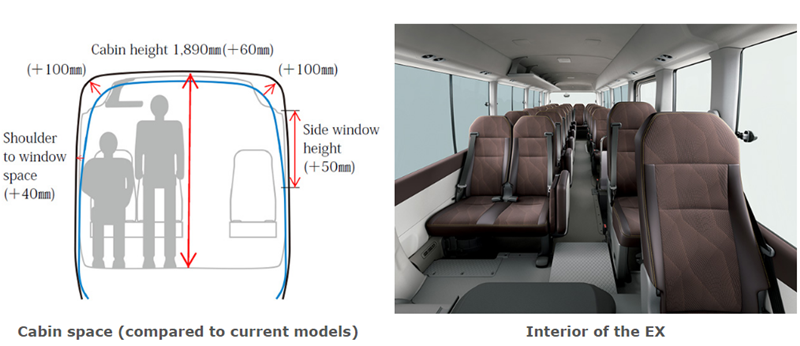 เดิม 50 มิลลิเมตร ทำให้ Toyota Coaster มีพื้นที่และทัศนวิสัยที่ดีกว่าเดิม นอกจากนี้