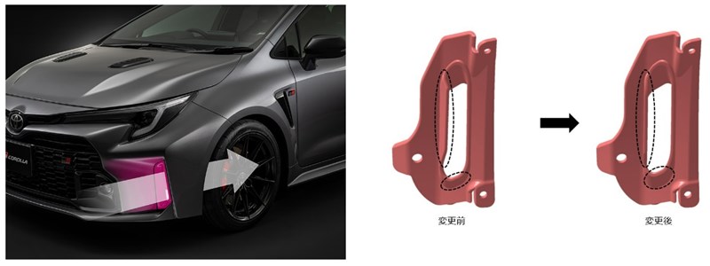สำหรับความเปลี่ยนแปลงอื่นเป็นงานวิศวกรรม ที่บริษัทเรียนรู้จากการแข่งขันรวมถึงรายการ Super Taikyu Series โดย Toyota GR Corolla รุ่นปรับอุปกรณ์ เปลี่ยนลักษณะติ่งด้านในของช่องลมกันชนหน้าใหม่ ให้รีดลมได้ดีขึ้น ช่วงล่างด้านหน้าเปลี่ยนหัวน็อตยึดใหม่ให้มีบ่ารองในตัว ส่วนช่วงล่างหลังเปลี่ยนน็อตยึดให้มีขนาดใหญ่ขึ้น ส่งผลให้การตอบสนองกระชับมั่นคงกว่าเดิม ทั้งบนทางตรงและทางโค้ง