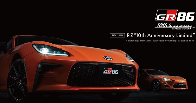 เพื่อเป็นการเฉลิมฉลอง Toyota GR86 รุ่นแรกมีอายุครบ 10 ปี จึงมีการเปิดตัวรุ่นพิเศษในชื่อ Toyota GR86 10th Anniversary Limited โดยความพิเศษอยู่ที่ตัวถังสีส้ม Flame Orange แบบเดียวกับรุ่นแรก เสริมด้วยสัญลักษณ์เฉพาะรุ่นบนกระจกบานหลัง, เบาะ และ แผงประตู ส่วนห้องโดยสารมาในโทนสีดำขลิบด้วยสีส้ม