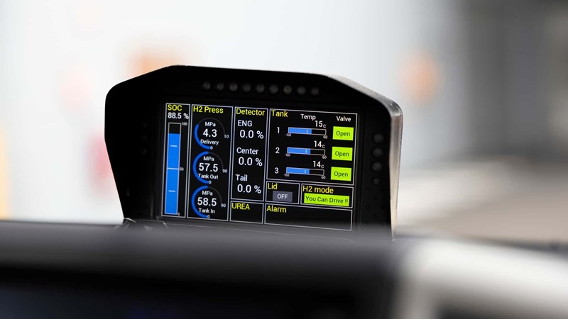 Toyota HiAce ต้นแบบขุมพลังไฮโดรเจน มาพร้อมเกียร์อัตโนมัติ 10 จังหวะ ส่งกำลังผ่านระบบขับเคลื่อนล้อคู่หลัง ถังเชื้อเพลิงใช้ร่วมกับของ Toyota Mirai รุ่นล่าสุด แบบสามถังขนาดเล็กลงกว่ารุ่นก่อน มีความจุรวมกัน 141 ลิตร มีพิสัยการขับขี่สูงสุด 200 กิโลเมตร ซึ่งฟังดูไม่มากและ Toyota เองก็มองเห็นจุดอ่อนนี้ พร้อมกับระบุว่าจะหาทางเพิ่มพิสัยการขับขี่ต่อไป โดยอาจเป็นการพัฒนาประสิทธิภาพการสันดาป หรือเพิ่มระบบ Hybrid