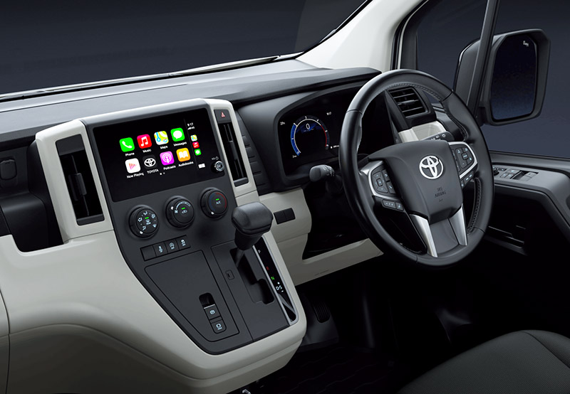 Toyota HiAce รุ่นปี 2026 ปรับเปลี่ยนมาตรวัดใหม่เป็นหน้าจอดิจิตอลขนาด 7 นิ้ว ปรับเปลี่ยนรูปแบบการแสดงผลได้ 9 รูปแบบ ในทุกรุ่นย่อย ทั้งยังเพิ่มเบรกมือไฟฟ้ามาให้ครบทุกรุ่นด้วย พร้อมกับเปลี่ยนสารทำความเย็นใหม่ ให้ระบบปรับอากาศมีประสิทธิภาพดีขึ้น แถมยังขับขี่ในเมืองง่ายขึ้นด้วยการเพิ่มพวงมาลัยไฟฟ้า EPS สำหรับระบบความปลอดภัยซึ่งเป็นส่วนหนึ่งของ Toyota Safety Sense นั้นเพิ่มมาอีกหลายรายการด้วยกัน