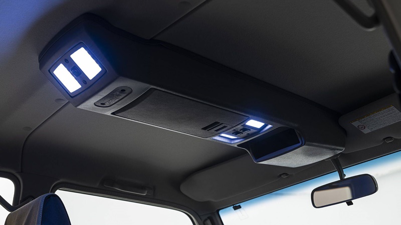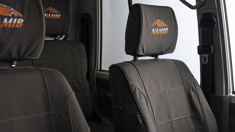 ห้องโดยสารเปลี่ยนวัสดุหุ้มเบาะเป็นผ้าสีเทา Grey Canvas เฉพาะรุ่น พร้อมปักชื่อรุ่น Namib และตกแต่งด้วยกันเตะประตู ส่วนอุปกรณ์อำนวยความสะดวกมีทั้ง ช่องเก็บของที่ต่อลมเย็น จากระบบปรับอากาศไว้แช่เย็น, ไฟส่องสว่าง LED รอบคันรวมถึงบนเพดาน, ถังขยะ และวิทยุสื่อสารแบบ two-way พร้อมที่แขวนไมโครโฟน