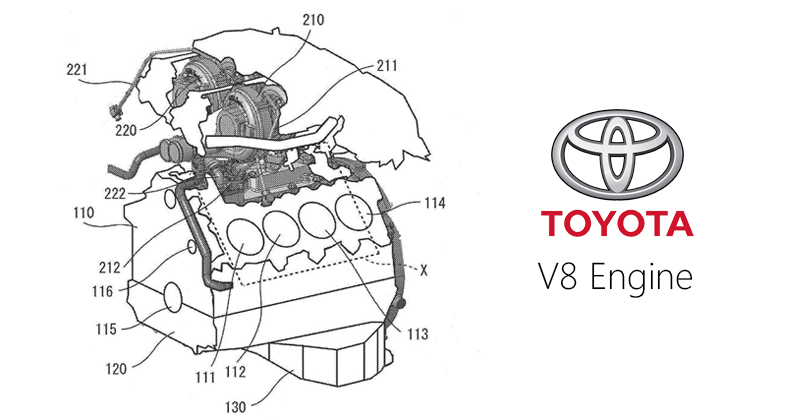 การจดสิทธิบัตรขุมพลัง V8 ของ Toyota มีขึ้นในสหรัฐฯ ตั้งแต่เดือนกันยายน 2020 แต่พึ่งมีการค้นพบเมื่อเดือนพฤษภาคม 2021 โดยในสิทธิบัตรยังลงรายละเอียดว่า ขุมพลังนี้ตั้งเป้าให้เป็นเครื่องยนต์เบนซิน DOHC ความจุ 4.0 ลิตร อาจติดตั้งเทอร์โบ ทั้งแบบเดี่ยว หรือ แบบคู่ นอกจากนั้น ยังลงรายละเอียดปลายเปิดว่า เทคโนโลยีนี้จะไม่จำกัดที่ 8 สูบ ตามภาพแนบ เนื่องจากใช้เพื่อการสื่อให้เห็นภาพของเครื่องยนต์สันดาปภายในเท่านั้น