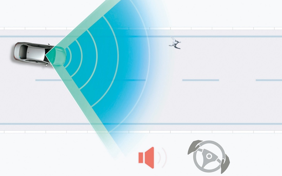 - ระบบลดความเร็วโดยอัตโนมัติเมื่อเสี่ยงชน ตรวจจับคนเดินถนนและจักรยานได้