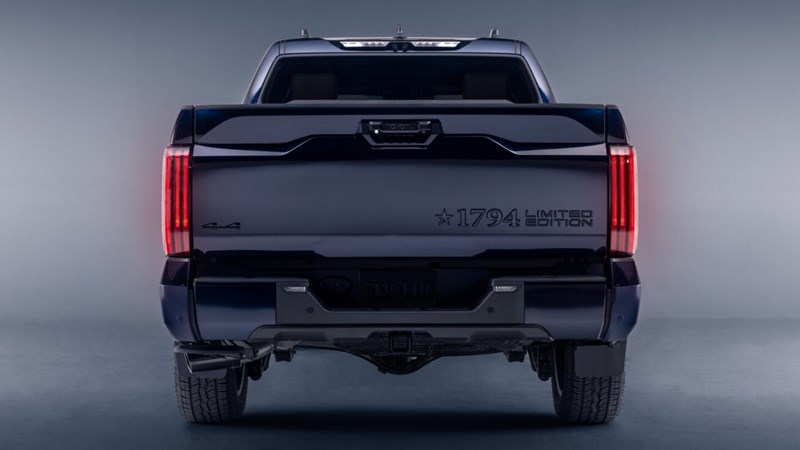 Toyota Tundra 1794 Limited Edition เปิดตัวที่สหรัฐฯ เมื่อวันที่ 29 กันยายน 2023 ในฐานะรุ่นพิเศษผลิตจำนวนจำกัด 1,500 คัน มีกำหนดการเริ่มส่งมอบในช่วงต้นปีหน้า ส่วนพื้นฐานมาจากรุ่น 4 ประตู Crew Max พร้อมกระบะความยาว 5.5 ฟุต (1,676 มิลลิเมตร) ซึ่งผ่านการต่อยอดด้วยการตกแต่งภายนอกรอบคันในโทนสีดำ รวมถึงกระจังหน้าและคิ้วข้างตัวถังแบบโครเมี่ยมรมดำ เสริมด้วยฝาท้ายปั๊มชื่อรุ่นพิเศษ
