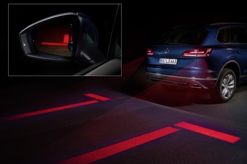 เส้นแบบถนนจากไฟหน้า ยังสามารถปรับองศาตามโค้งของถนนได้ด้วย ถือว่าเป็นการต่อยอดระบบช่วยนำทางผู้ขับขี่ตามช่องจราจร Optical Lane Assist ให้เป็นสิ่งที่มองเห็นได้อย่างชัดเจน ส่วนไฟท้ายสามารถฉายเส้นถนนลงพื้นแบบเดียวกันได้ ช่วยให้ผู้ขับขี่กะระยะการถอยจอด ได้อย่างปลอดภัยและง่ายดายขึ้น