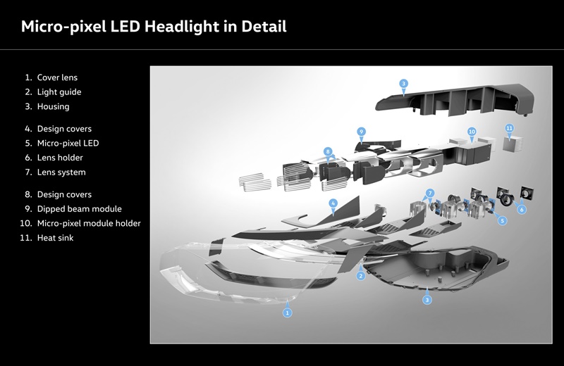 พื้นฐานของระบบดังกล่าวเป็นไฟแบบ LED สมรรถนะสูง แบบ micro-pixel HD ความละเอียด 30,000 จุด ซึ่งถือว่าเป็นทางเลือกที่ราคาถูกกว่าไฟแบบ laser light ส่วนลูกเล่นของไฟหน้าคือ การฉายเส้นถนนลงพื้น เพื่อนำทางผู้ขับขี่ไปตามถนนที่ไม่มีเส้นแบ่งทาง พร้อมช่วยกะระยะความกว้างของรถยนต์ เมื่อวิ่งผ่านช่องแคบ