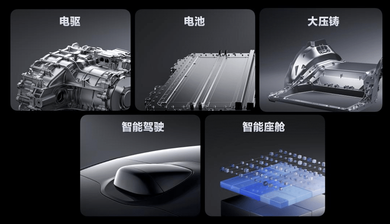 ในส่วนของอัลลอยนั้นเป็นสิ่งที่บริษัทภูมิใจเนื่องจาก Lei Jun ผู้ก่อตั้งรวมถึงควบตำแหน่ง Chairman และ CEO ของ Xiaomi เคยประกาศในปีก่อนว่า บริษัทเป็นผู้ผลิตรถยนต์รายเดียวในจีน ที่สามารถผลิตอัลลอยซึ่งพัฒนาขึ้นเองในจำนวนมากได้ นอกจากนั้น Xiaomi จะมีห้าเทคโนโลยีหลักทั้ง ขุมพลังไฟฟ้า, แบตเตอรี่, การหล่อเหล็กขนาดใหญ่, ห้องโดยสาร smart และระบบขับขี่อัตโนมัติ