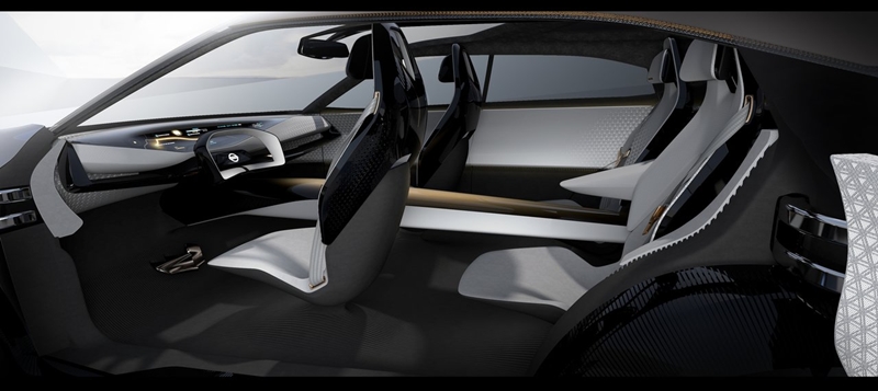 ภายในห้องโดยสารล้ำสมัยตามประสารถต้นแบบ เบาะนั่งถักทอด้วยผ้าทูโทน 3 มิติ ที่มีการตัดขึ้นรูปด้วยเลเซอร์ให้ความเนี๊ยบคมไม่แพ้งานหัตถกรรมไม้จากญี่ปุ่น การออกแบบอินเตอร์เฟซหน้าจอจะเป็นการออกแบบเน้นศูนย์รวมยังผู้ขับขี่เป็นหลัก ถึงแม้ว่าหน้าจอสีแสดงผลจะมีความยาวถึง 840 มิลลิเมตรก็ตาม