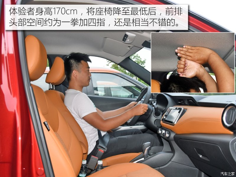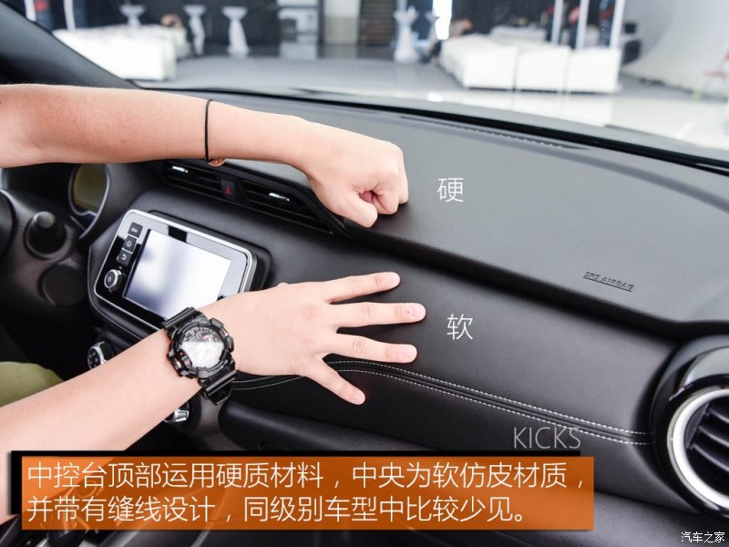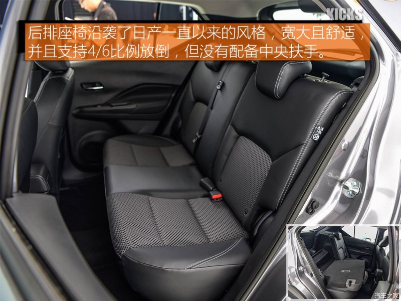 จุดขายสำคัญของ Nissan Kicks นอกเหนือจากราคาที่ค่อนข้างถูกเมื่อเทียบกับขนาดตัวถังแล้ว ภายในห้องโดยสารก็เป็นจุดขายสำคัญอีกประการหนึ่ง ด้วยการบุวัสดุนุ่มบนแผงแดชบอร์ดและแผงข้างประตูบางส่วน พร้อมทั้งสามารถเลือกสีวัสดุหุ้มได้, ติดตั้งมาตรวัดความเร็วและการแสดงผลแบบหน้าจอสี TFT, มีเนื้อที่ภายในห้องโดยสารกว้างขวาง หากผู้ขับขี่มีความสูง 178 เซนติเมตรก็จะมีเนื้อที่เหนือศีรษะเหลือเฟือถึง 2 กำปั้น, มีพื้นที่ห้องสัมภาระมากถึง 428 ลิตร