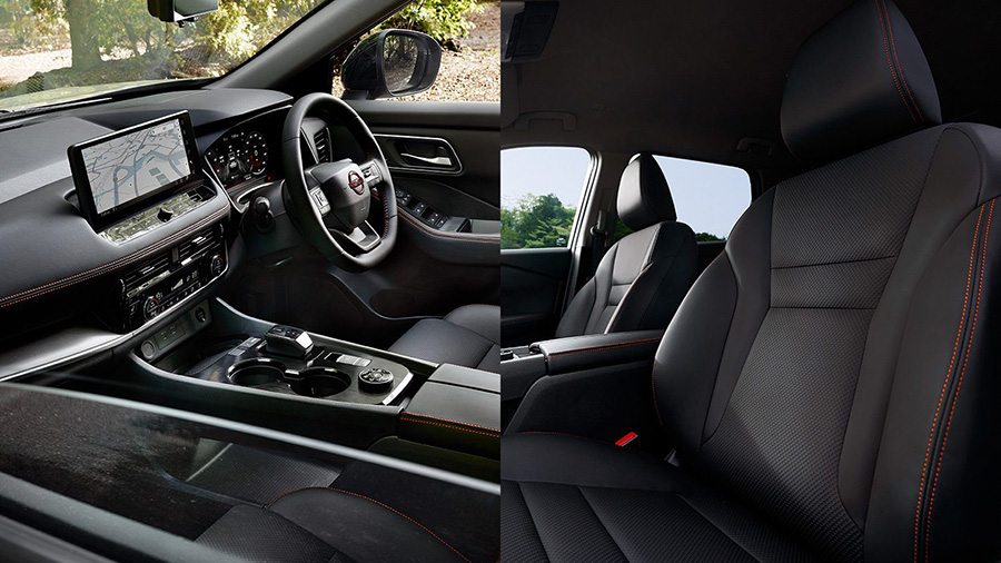ภายใน ห้องโดยสารตกแต่งโทนดำตัดแถบแดง เพิ่มความสปอร์ตแบบ NISMO แต่ยังคงความกว้างและอเนกประสงค์ พวงมาลัยมัลติฟังก์ชันใหม่ เบาะมาตรฐานสีดำ-แดงสปอร์ต และมีตัวเลือกเบาะ Recaro NISMO พร้อมระบบปรับไฟฟ้าและฟังก์ชันอุ่นเบาะ