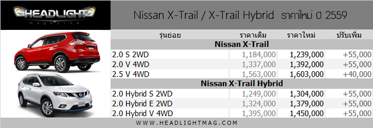 Nissan X-Trail / X-Trail Hybrid ราคาตามภาษีใหม่ 2559