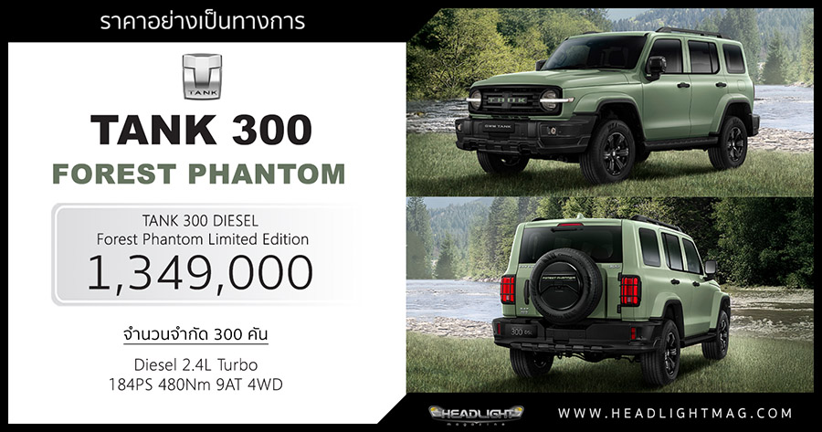 - Tank 300 Diesel Forest Phantom 9AT 4WD : 1,349,000 บาท