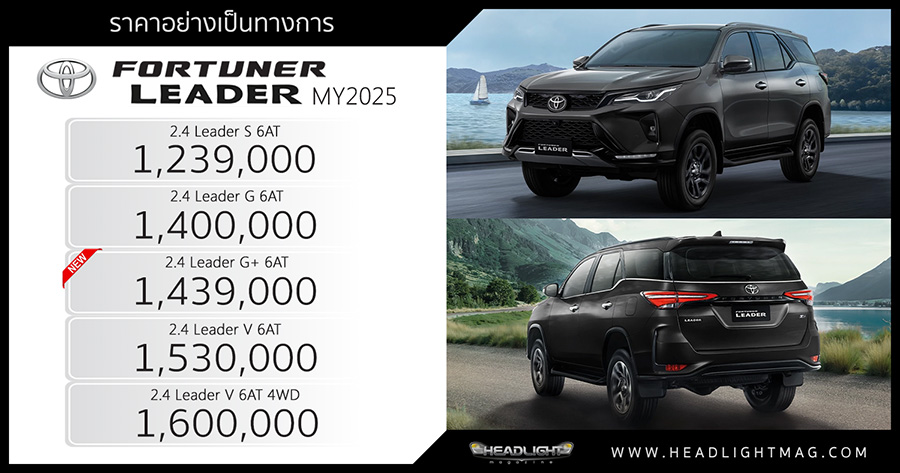 - Fortuner 2.4 Leader G+ : 1,439,000 บาท (NEW)