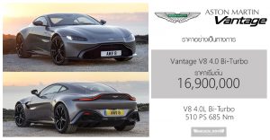 ราคาอย่างเป็นทางการ Aston Martin VANTAGE V8 4.0 Bi-Turbo เริ่มต้น 16,900,000 บาท (นำเข้า CBU)