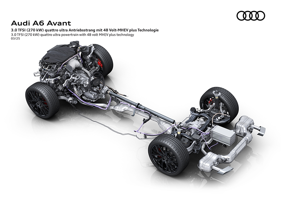 เครื่องยนต์เบนซิน V6 สูบ DOHC 24 วาล์ว 3.0 ลิตร พ่วงระบบอัดอากาศ Turbocharged กำลังสูงสุด 270 กิโลวัตต์ หรือ 367 แรงม้า (PS) แรงบิดสูงสุด 550 นิวตันเมตร ทำงานร่วมกับระบบ MHEV Plus มีมอเตอร์ไฟฟ้า 24 แรงม้า 230 นิวตันเมตร ช่วยเพิ่มพละกำลังชั่วขณะ ขับเคลื่อน 4 ล้อ quattro AWD