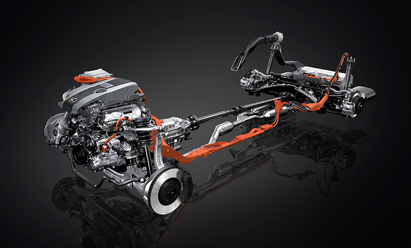 เมื่อเครื่องยนต์ทำงานร่วมกับมอเตอร์ไฟฟ้า จะได้พละกำลังรวม 197 แรงม้า ส่งกำลังผ่านเกียร์ E-CVT