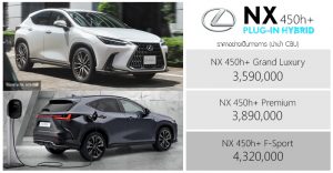 All NEW Lexus NX 450h+ Plug-in Hybrid ราคาอย่างเป็นทางก … อ่านเพิ่มเติม ราคาอย่างเป็นทางการ All NEW Lexus NX 450h+ Plug-in Hybrid : 3,590,000 – 4,320,000 บาท (นำเข้า CBU)