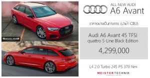 ราคาอย่างเป็นทางการ Audi A6 Avant 45 TFSI quattro S-Line Black Edition : 4,299,000 บาท (นำเข้า CBU)