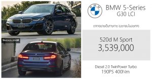 BMW 520d M Sport (G30 LCI) ราคาอย่างเป็นทางการ (ประกอบใ … อ่านเพิ่มเติม ราคาอย่างเป็นทางการ BMW 520d M Sport (G30 LCI) : 3,539,000 บาท (ประกอบไทย) เพิ่ม Option เพียบ !