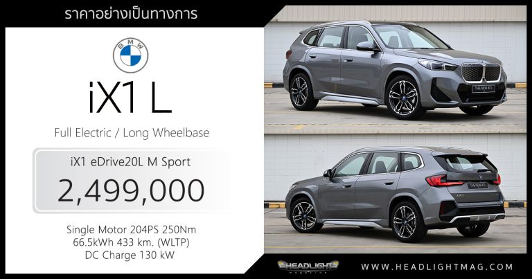 ราคาอย่างเป็นทางการ BMW iX1 L eDrive20L M Sport (Long W … อ่านเพิ่มเติม ราคาอย่างเป็นทางการ BMW iX1 eDrive20L M Sport : 2,499,000 บาท | 204 แรงม้า แบต 66.5 kWh วิ่งไกล 433 km. (WLTP)