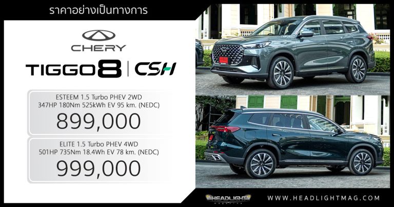 ราคาอย่างเป็นทางการ CHERY TIGGO 8 CSH Tiggo 8 CSH PHEV … อ่านเพิ่มเติม ราคาอย่างเป็นทางการ CHERY TIGGO 8 CSH : 899,000 – 999,000 บาท | SUV เบาะ 3 แถว เบนซิน 1.5L Turbo PHEV