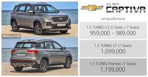ราคาอย่างเป็นทางการ Chevrolet Captiva 1.5 TURBO (5ที่นั่ง / 7 ที่นั่ง) : 959,000 – 1,199,000 บาท