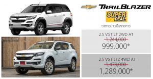 ราคาอย่างเป็นทางการ Chevrolet Trailblazer (Super Deal) : 999,000 – 1,289,000 บาท* (1-30 กันยายน 61)
