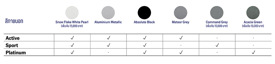 - สีเทา Command Grey (เฉพาะรุ่น Sport)