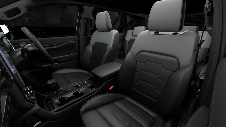 - เบาะนั่งหุ้มด้วยหนัง และหนังสังเคราะห์สีทูโทน ดำ – เทา
