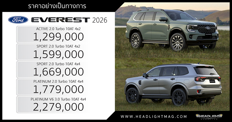 ราคาอย่างเป็นทางการ Ford EVEREST MY2026