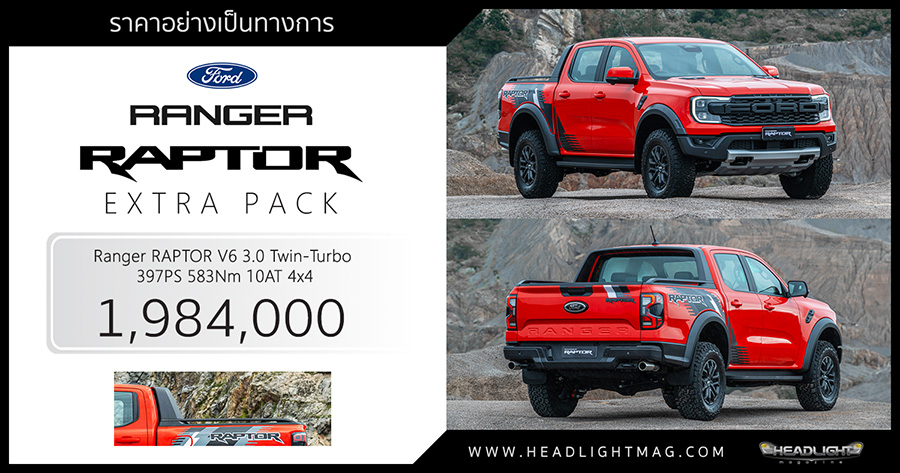 - Ranger Raptor V6 3.0 Twin-Turbo 10AT 4WD Extra Pack : 1,984,000 บาท