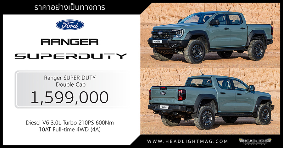 - Ranger Super Duty Double Cab V6 3.0 10AT 4×4 : 1,599,000 บาท