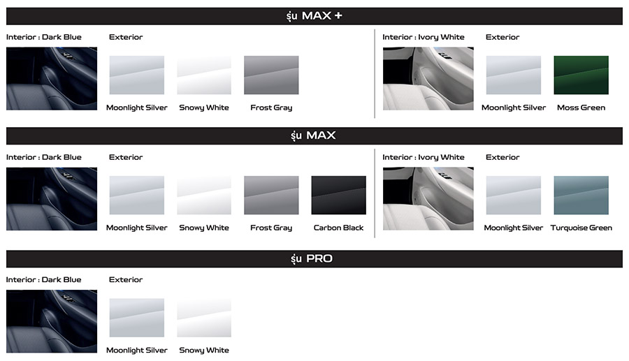 • สีเงิน Moonlight Silver – ภายในดำ หรือ ภายในขาว