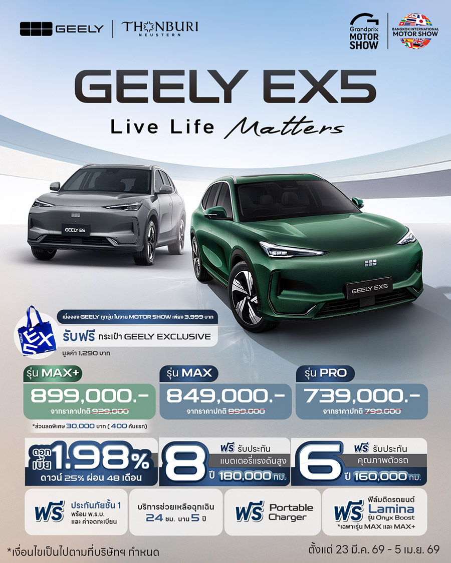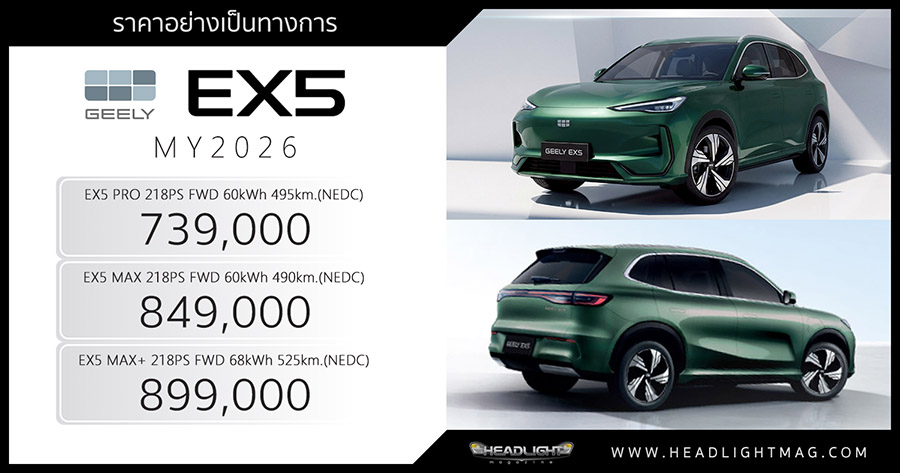 ราคาอย่างเป็นทางการ GEELY EX5 (MY2026)