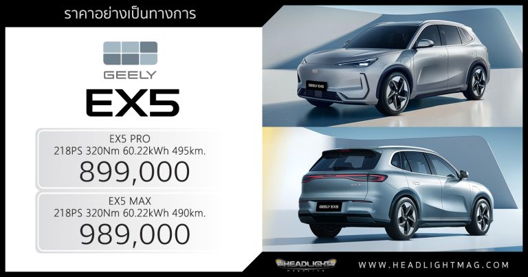 ราคาอย่างเป็นทางการ GEELY EX5 EX5 Pro : 899,000 บาท EX5 … อ่านเพิ่มเติม ราคาอย่างเป็นทางการ + เทียบสเป็ค GEELY EX5 : 899,000 – 989,000 บาท | 218 แรงม้า แบต 60.22 kWh วิ่งไกล 495 km.